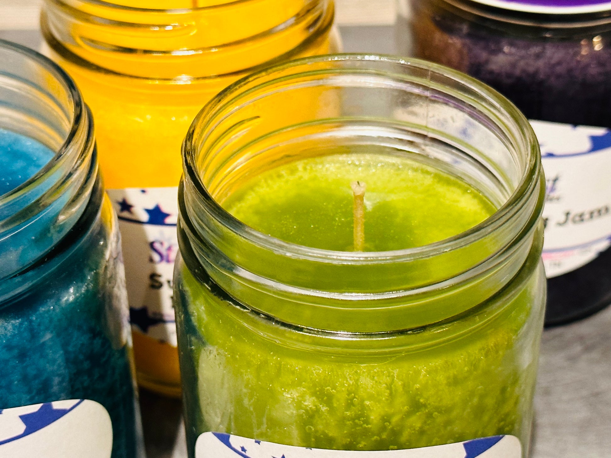 Introducing our 12 ounce Jelly Jar Candle. Hand-stirred and hand-poured with care, each candle is a testament to quality and attention to detail.