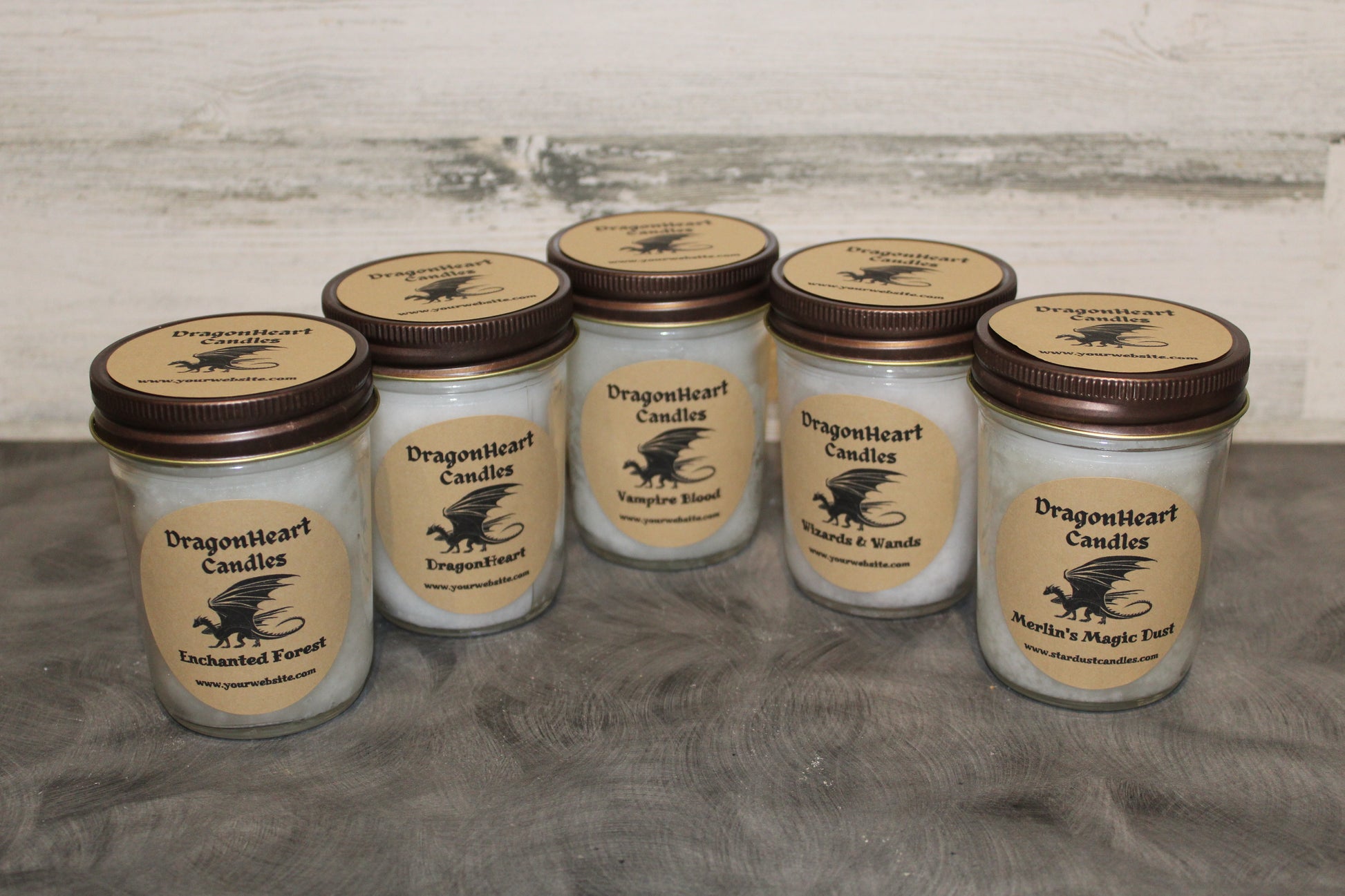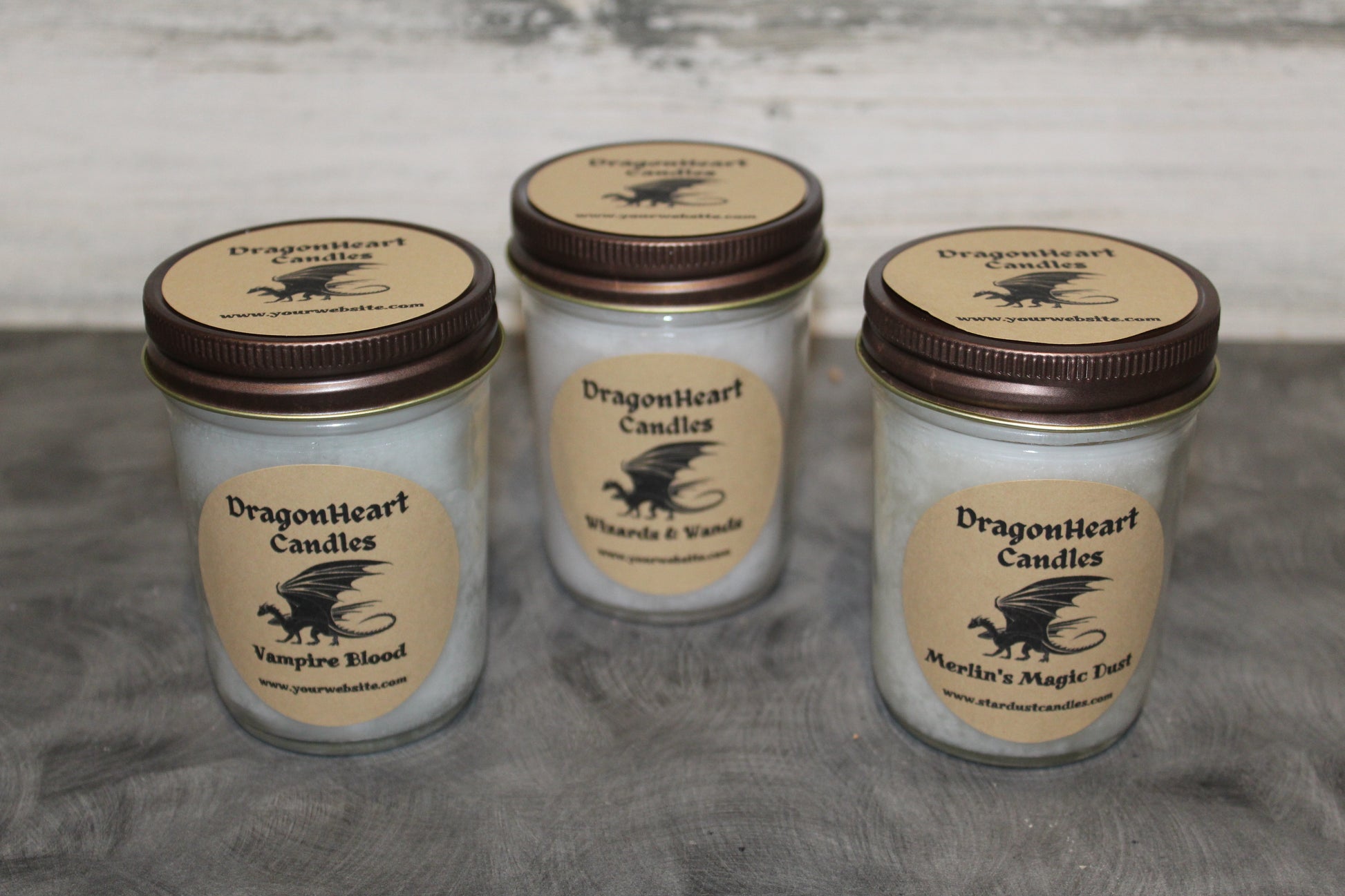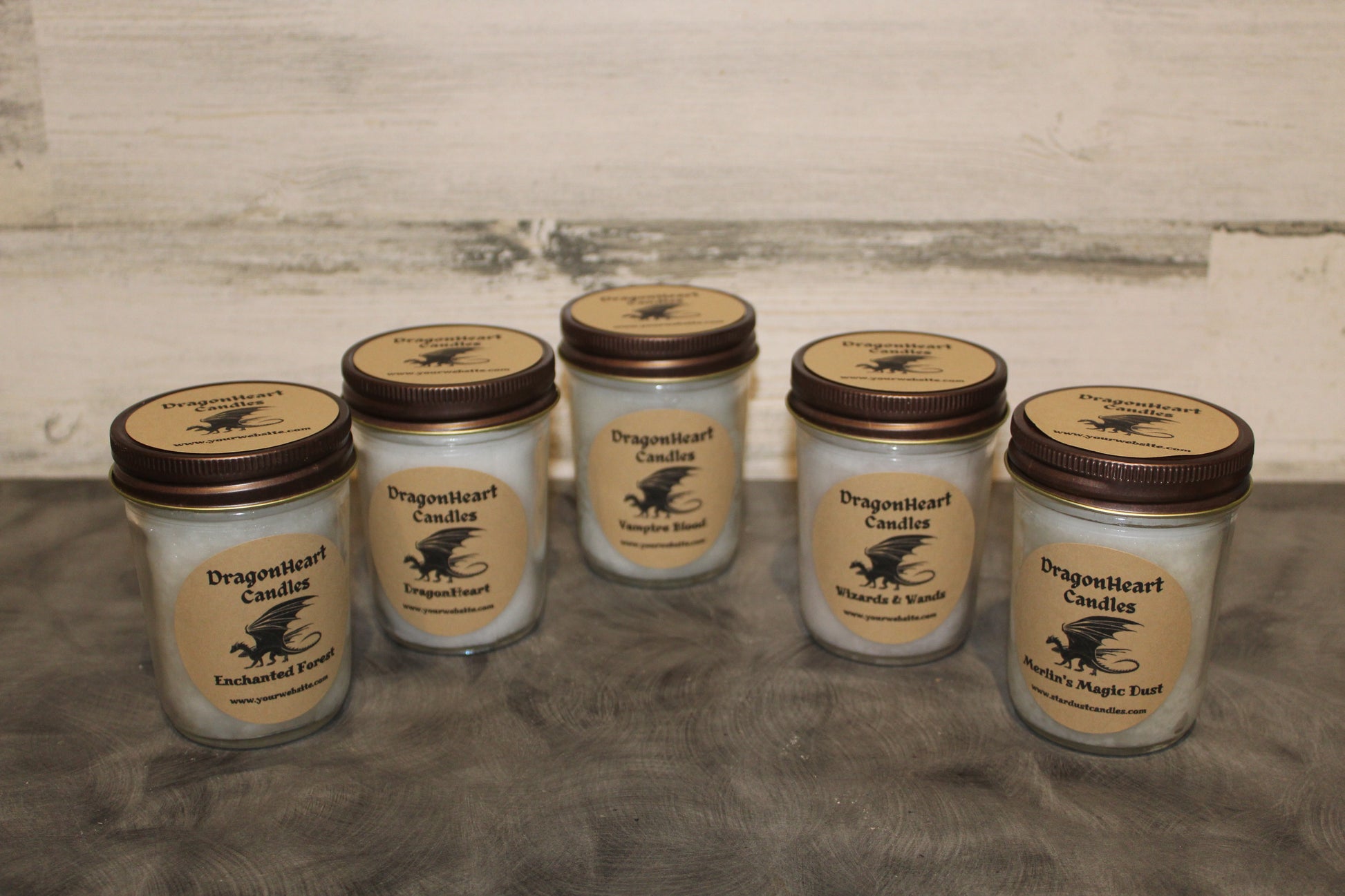 DragonHeart Candles are made of our mottled wax. They're hand stirred and hand poured into our 8oz Jelly Jars to ensure you get the best burn and even fragrance throw. With a burn time of 40-50 hours, you'll be able to bask in these enchanting fragrances evening after evening.