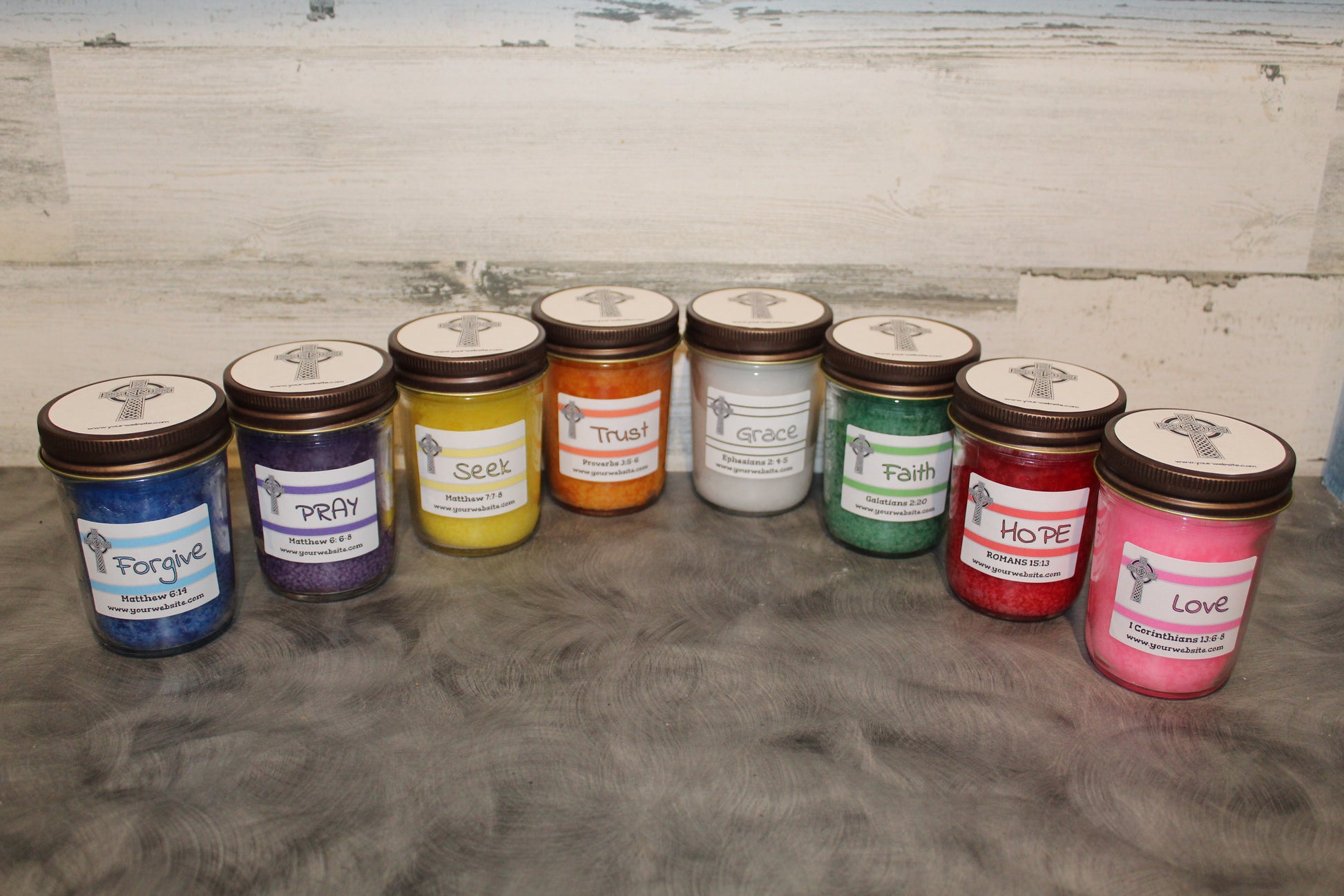 Hand-stirred and hand-poured, these candles ensure a consistent fragrance from the first light to the last, enveloping your room in an aroma that’s as steadfast as your faith. With each scent inspired by a cherished Bible verse, our Serenity Candles offer more than just light; they provide a sensory journey through the scriptures.